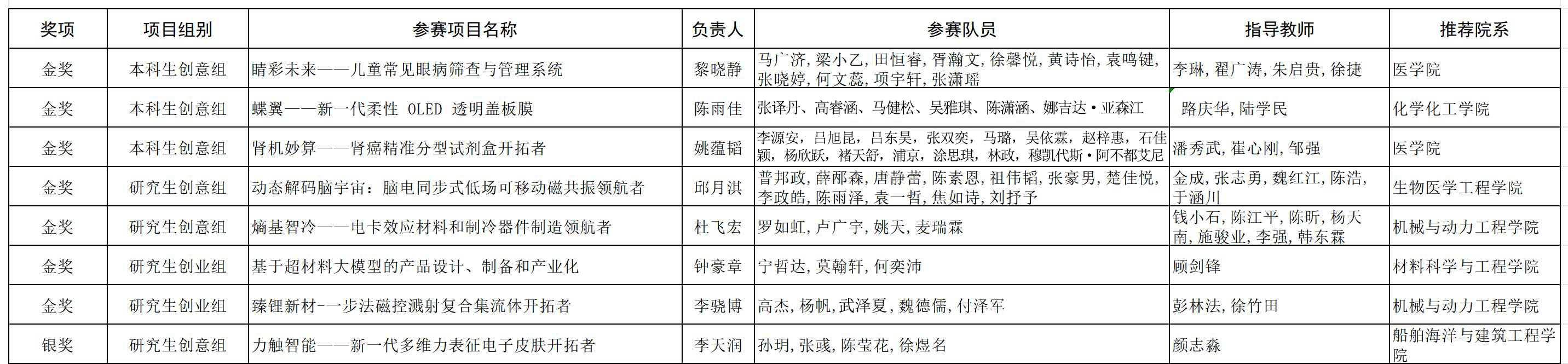 上海交通大学共有36个项目入围全国总决赛现场赛,经过激烈角逐,最终夺得23金13银,金奖总数全国排名第三。其中国内项目夺得13金4银,包括高教主赛道7金1银,青年红色筑梦之旅赛道2金2银,产业赛道4金1银。此外,我校推荐的国际项目夺得10金9银。